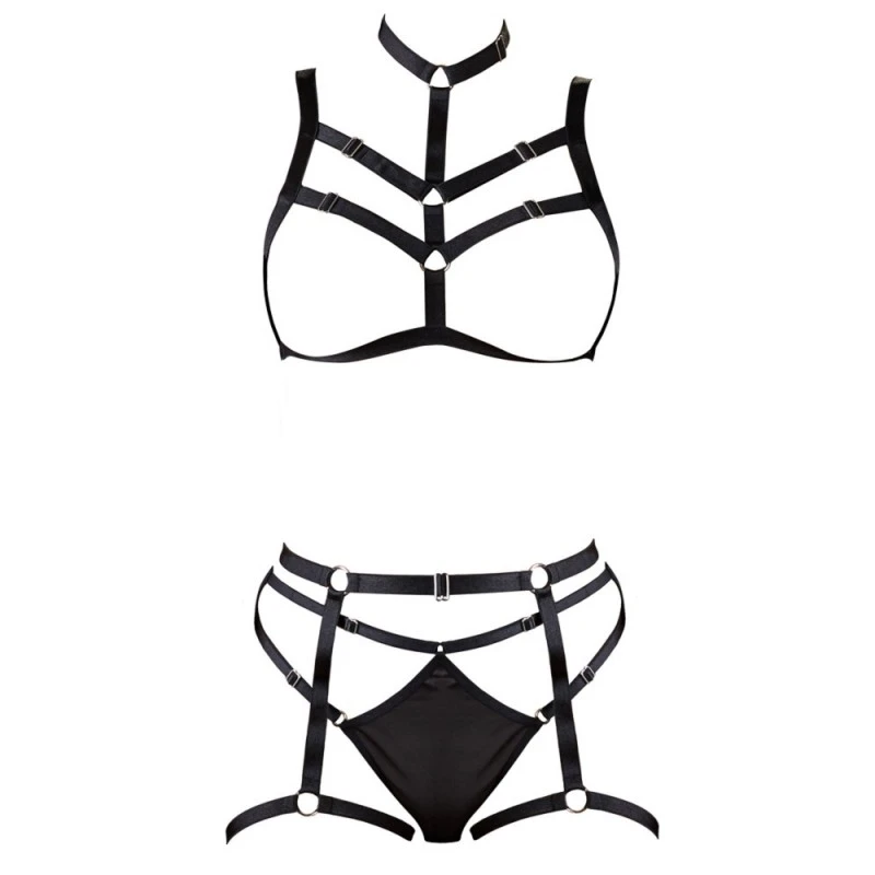Découvrez le Harnais BDSM 3 Pièces Ajustable de Cottelli Collection, une lingerie fétichiste qui rendra fou votre partenaire.