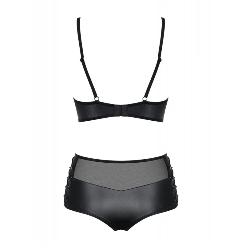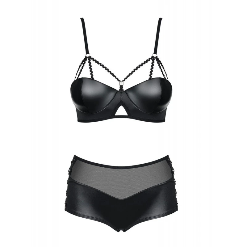 Découvrez l’Ensemble Wetlook Leatheria 2 Pièces Noir de Obsessive et ayez une allure de Dominatrice dans cette lingerie des plus érotiques.