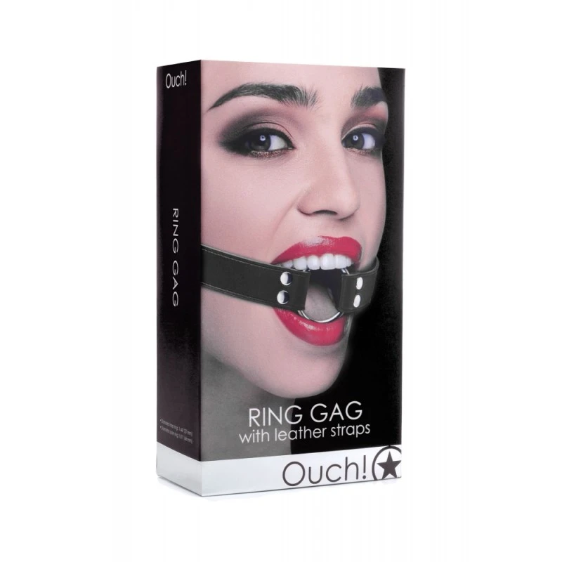 Découvrez le Bâillon Anneau avec Sangles Cuir Noir de Ouch!, un accessoire BDSM idéal pour imposer le silence à votre partenaire !