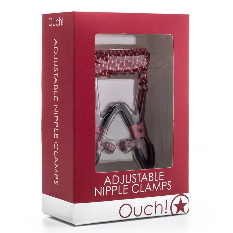 Découvrez les Pinces à Seins avec Chaîne Ajustables Rouges de la marque Ouch! et prenez du plaisir dans la douleur lors de vos séances BDSM !