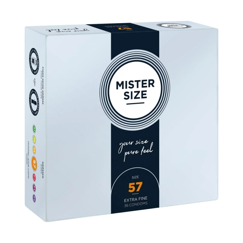 Découvrez la Boîte de 36 Préservatifs Pure Feel Mister Size 57 mm, un maxi-format de 36 préservatifs d’une largeur de 57 mm pour s’ajuster parfaitement à votre taille ! Mister Size s’engage à proposer jusqu’à 7 tailles de préservatifs pour que vous puissiez trouver celle qui vous conviendra pour profiter de rapports intimes confortables et sécuritaires !