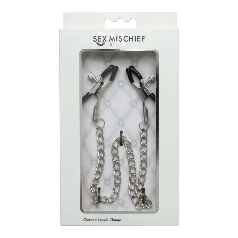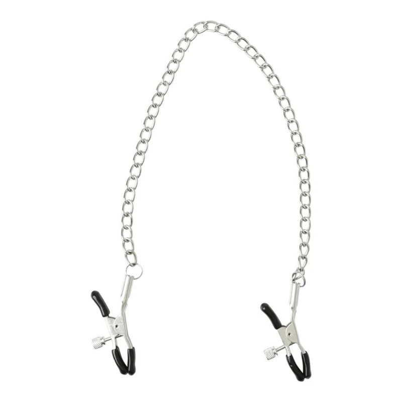 Testez vos limites ou celles de votre partenaire avec les Pinces à Tétons avec Chaîne en Métal de Sex & Mischief ! Ces pinces réglables avec une petite vis sont une parfaite introduction à des jeux BDSM !