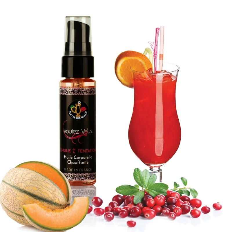 Découvrez l’Huile Gourmande & Chauffante Sex On The Beach Huile de la Tentation de Voulez-Vous…, elle offrira un moment sensuel en amoureux qui vous mènera à des nuits pleines de surprises…