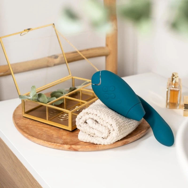 Découvrez le Stimulateur Clitoris & Point G DUO 2 Vert de Womanizer ! Ce sextoy haut de gamme combine la stimulation par air pulsé Pleasure Air avec la puissance des vibrations pour stimuler votre clitoris et votre point G simultanément !